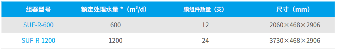 注:(1)* 推薦工作溫度范圍內的處理水量;